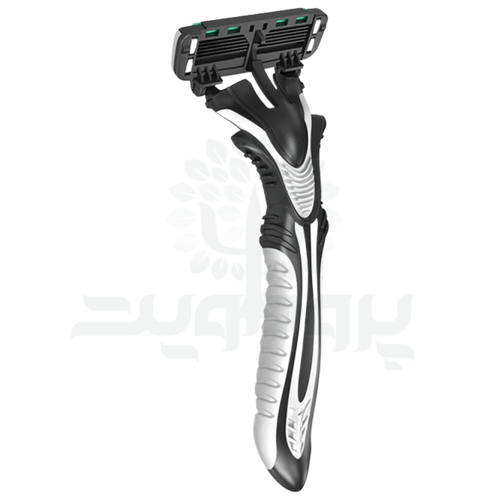 - شش لبه تیز و ضدزنگ: اصلاح را با سرعت و دقت بالا انجام میدهد و باعث کاهش تعداد دفعات کشیدن تیغ روی پوست میشود.
